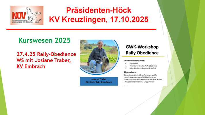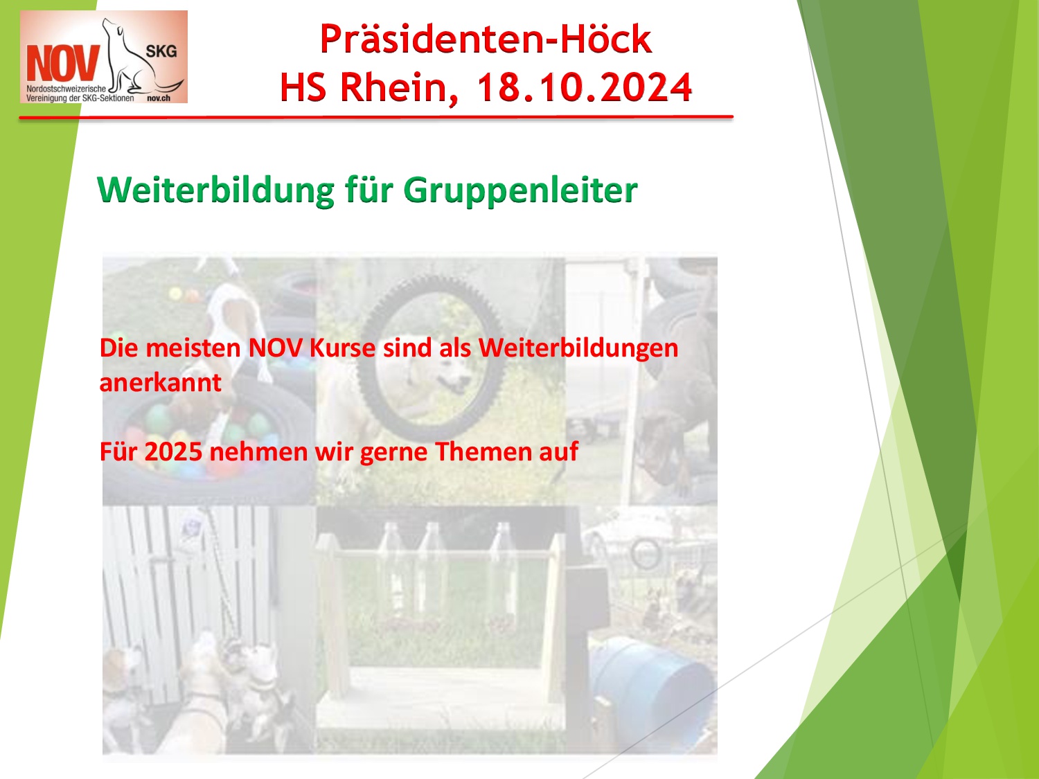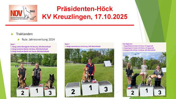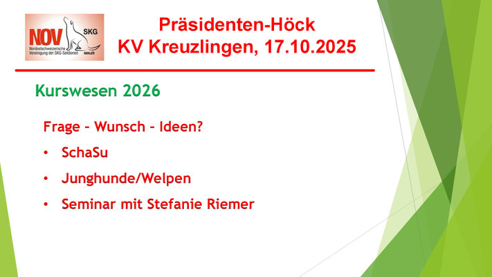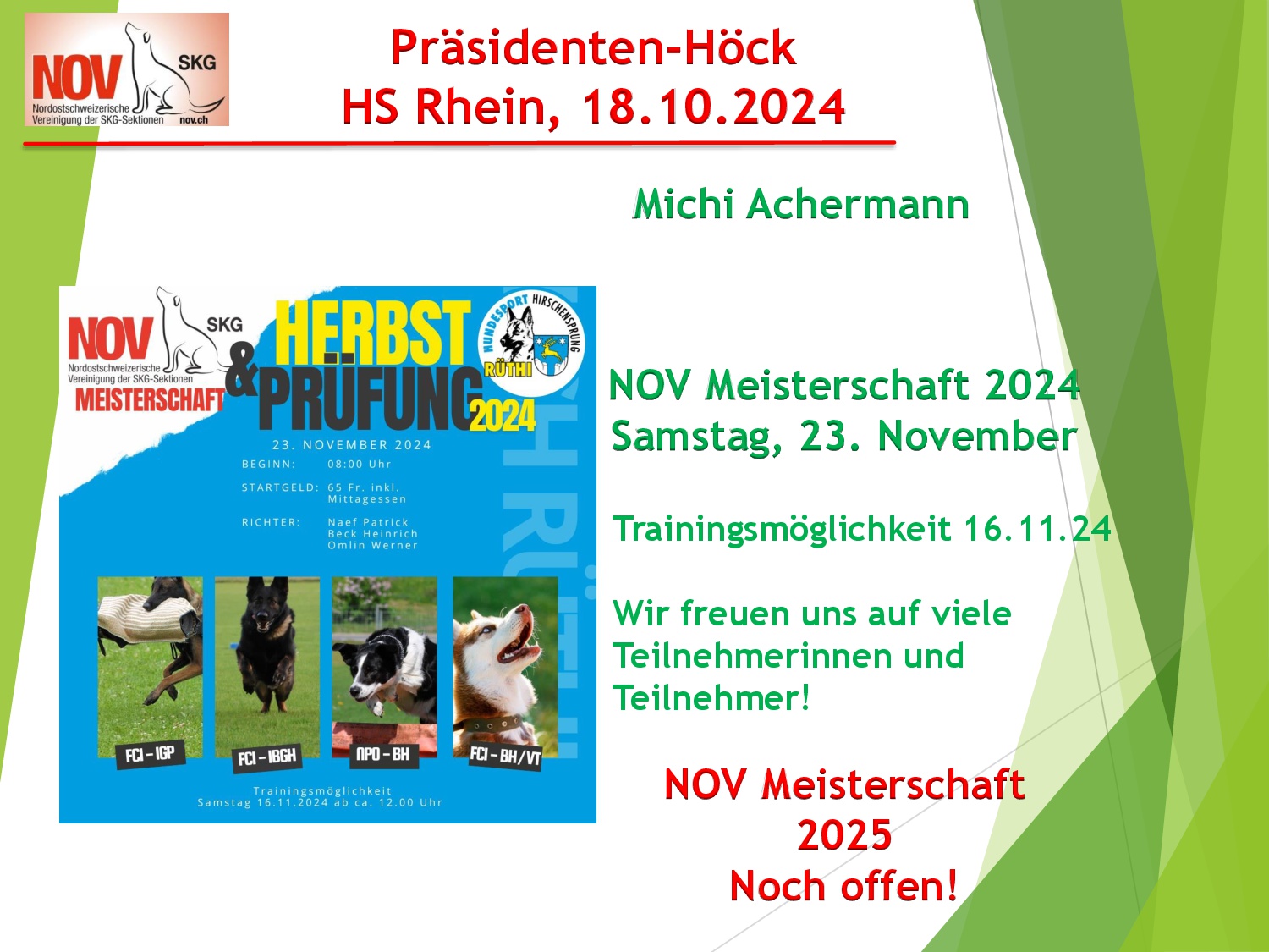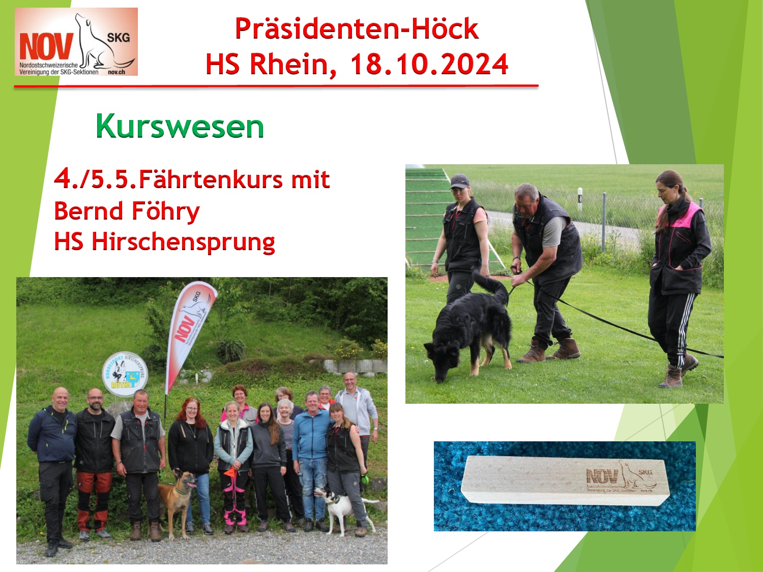Für 2024 sind bereits einige Kurse in diversen Sparten geplant. Michi Achermann freut sich, dass der KVF am 9. Dezember 23 die NOV Meisterschaft durchführen wird und hofft auf viele Anmeldungen, speziell in VPG. Der Gruppenwettkampf wird am 9. Juni vom KV Kreuzlingen durchgeführt, jedoch fehlt noch ein Organisator für die Meisterschaft 2024.
