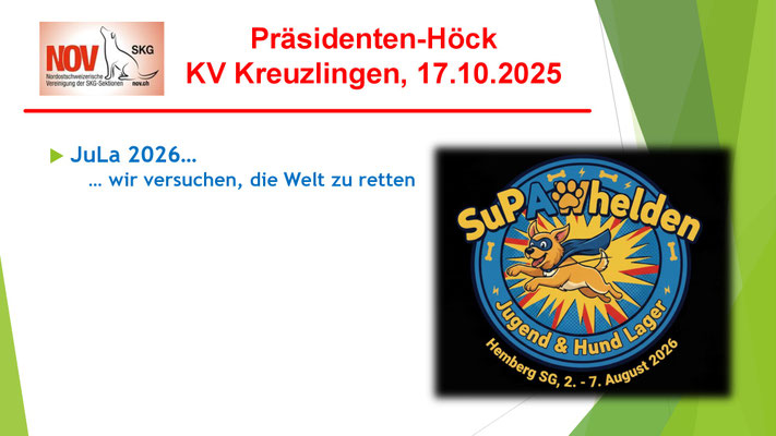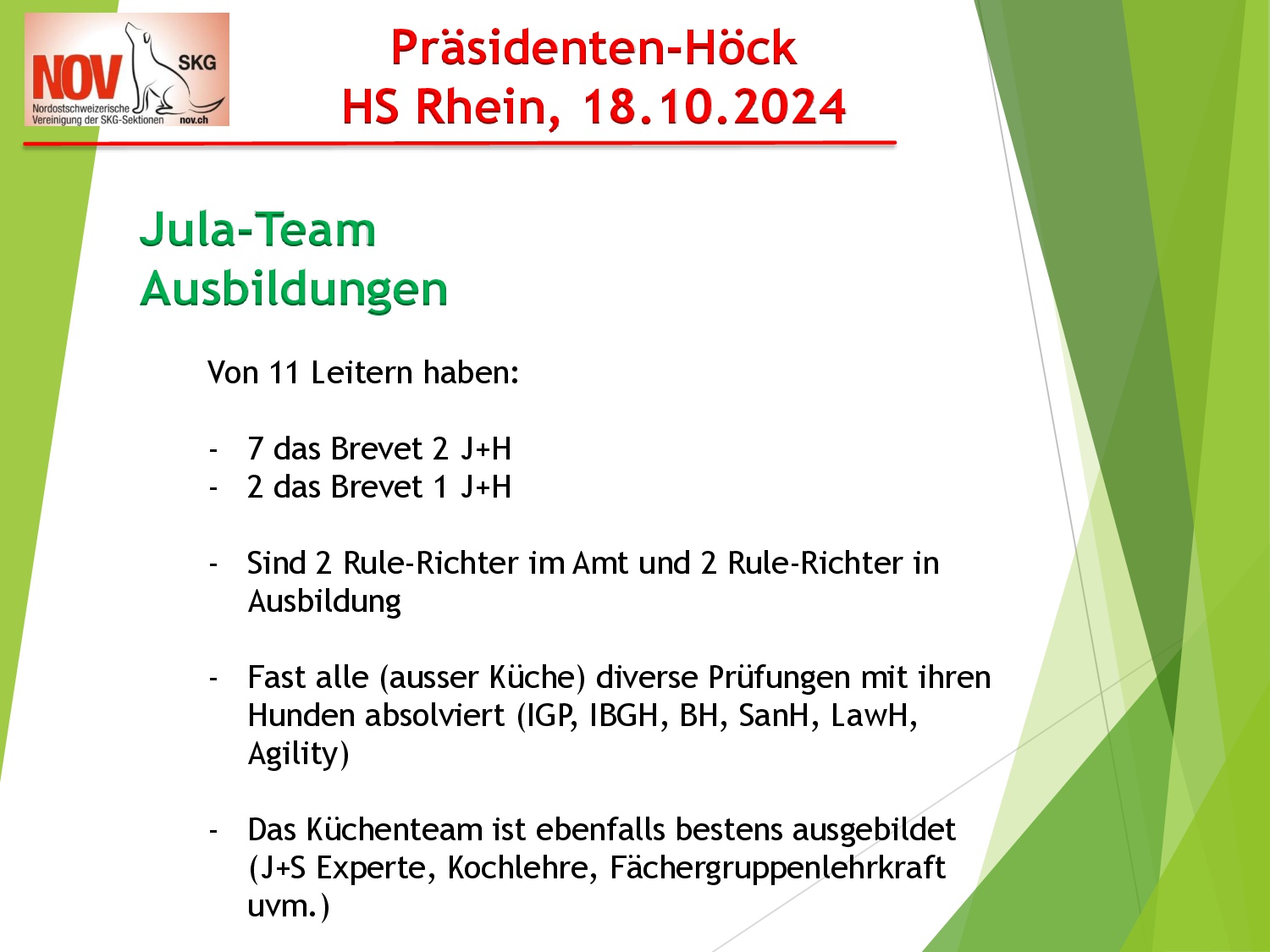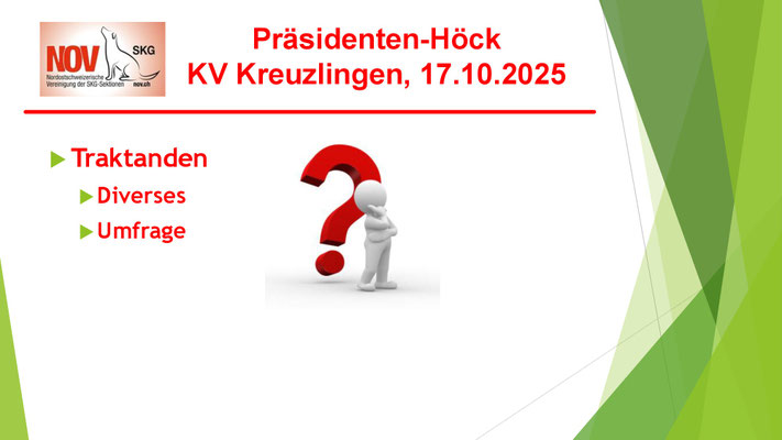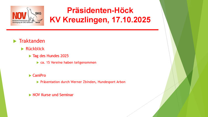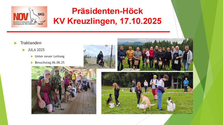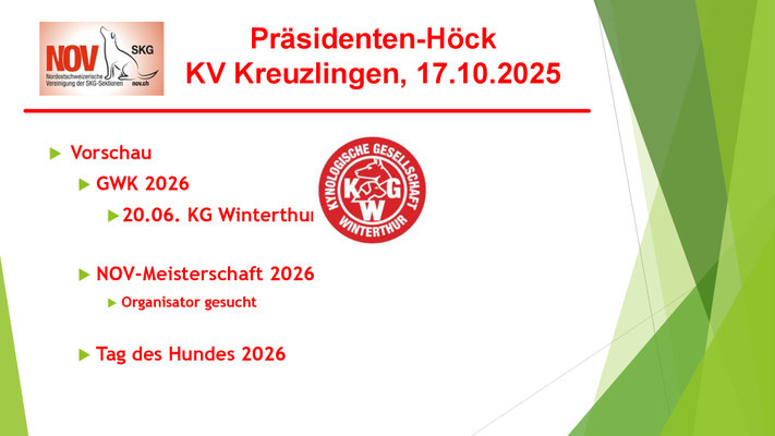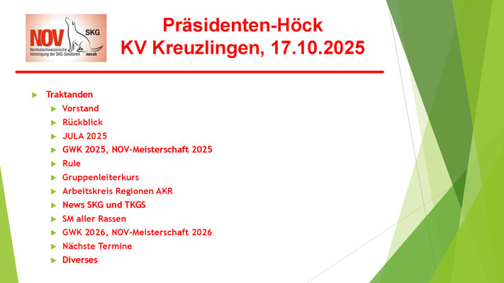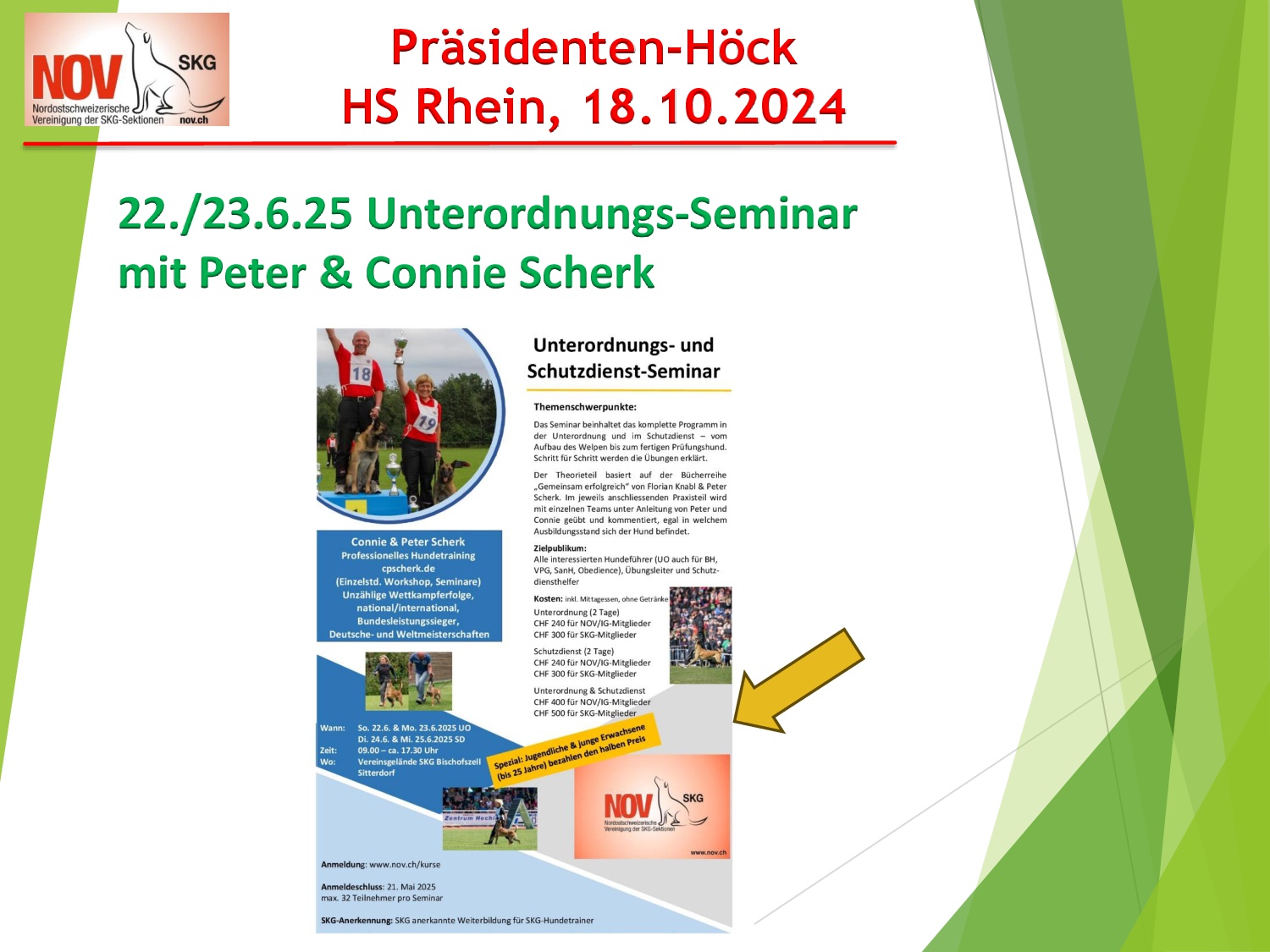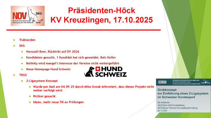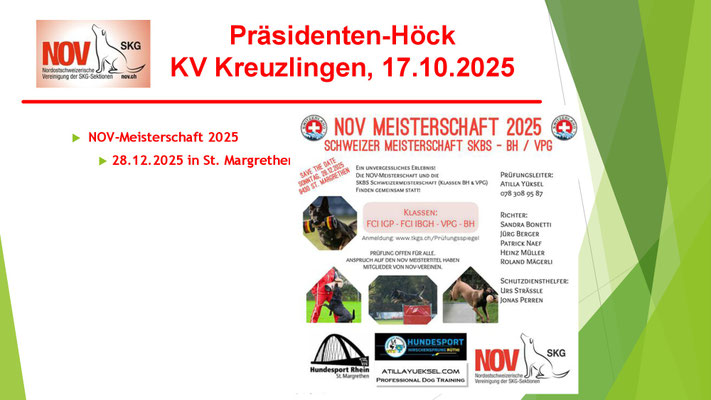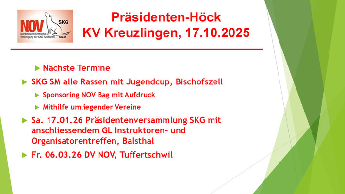Weitere wichtige Daten für Vereine sind am 30.11.23 die TKGS- und am 20.1.24 die SKG-Präsidentenkonferenz. Die NOV-Delegiertenversammlung ist auf den 23. Februar im Hotel Hecht, Rheineck, terminiert.