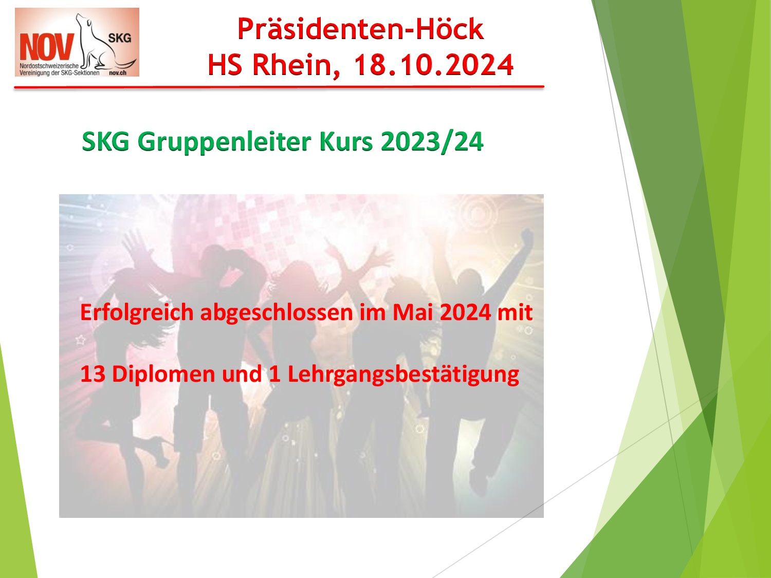 Am Freitag, 19. Oktober durfte Jürg Caderas die Präsidentinnen und Präsidenten der NOV Vereine mit ihren StellvertreterInnen beim KV Kreuzlingen begrüssen. Die neuen GruppenleiterInnen vom letzten Kurs waren gekommen, um ihr wohlverdientes Diplom in Empfang zu nehmen. Ein grosses Dankeschön an Flavia Gabriel und den KV Kreuzlingen, dass wir dort Gast sein durften.